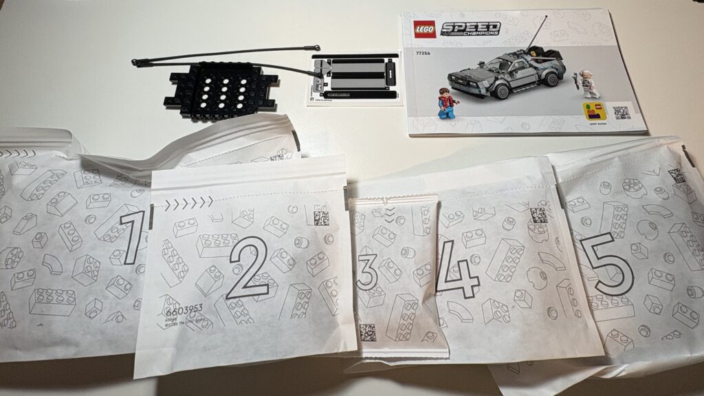 デロリアンのセットは大人を対象にした大きなサイズの物(LEGO Icons 10300 バック・トゥ・ザ・フューチャー デロリアン・DMC-12)もあるのですが、本棚に飾れるぐらいの大きさが良かったのでスピードチャンピオン版を選びました。